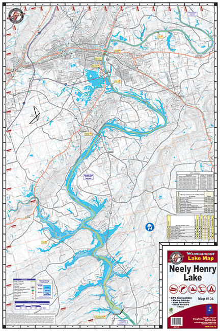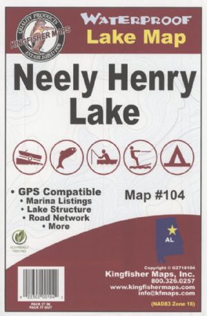 Neely Henry Lake, Alabama Waterproof Map (Kingfisher)
