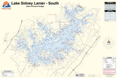 Lake Sidney Lanier, Georgia (South) Waterproof Map (Fishing Hot Spots)