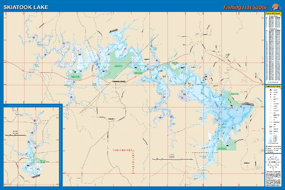 Skiatook Lake, Oklahoma Waterproof Map (Fishing Hot Spots)