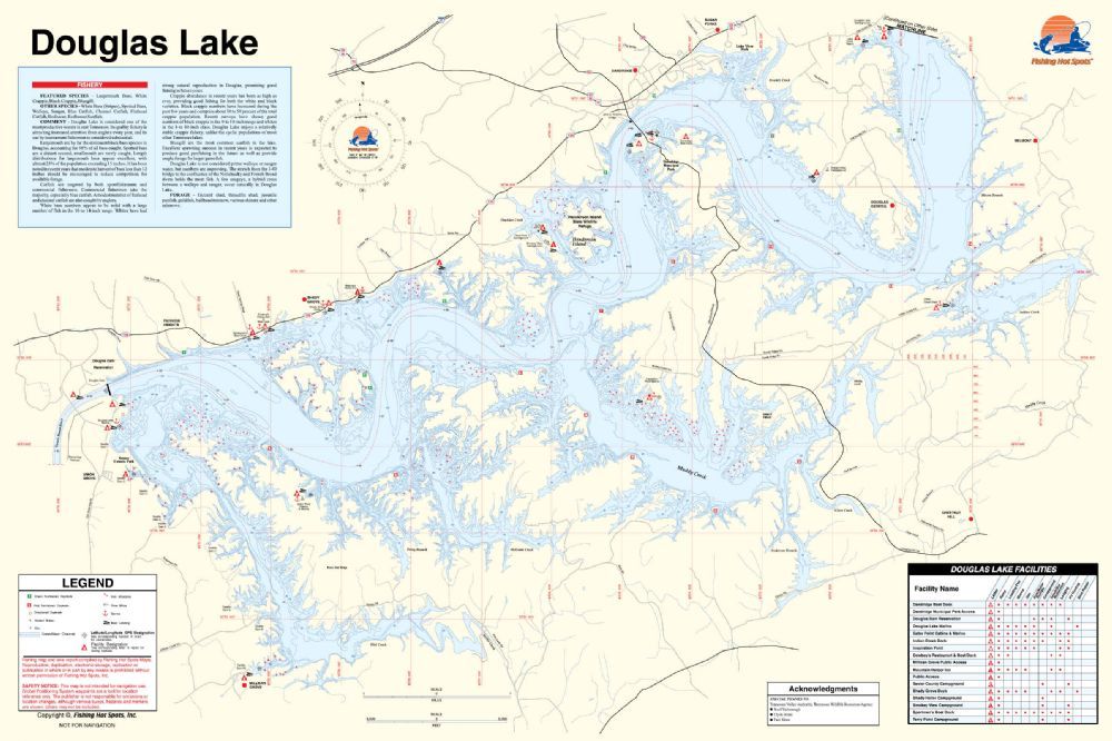 Douglas Lake, Tennessee Waterproof Map (Fishing Hot Spots)