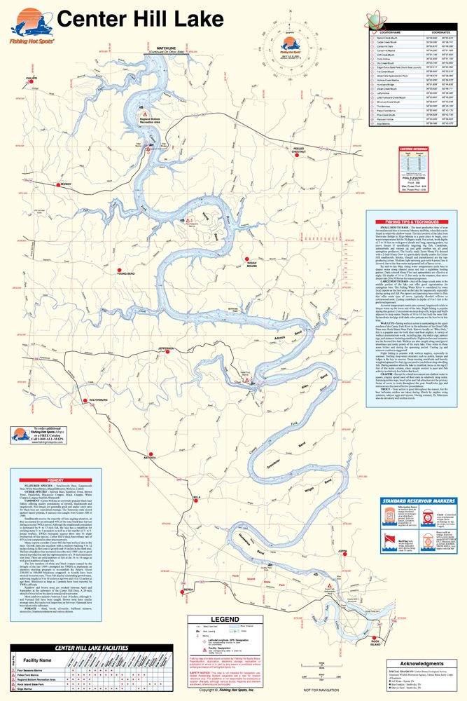 Center Hill Lake, Tennessee Waterproof Map (Fishing Hot Spots)