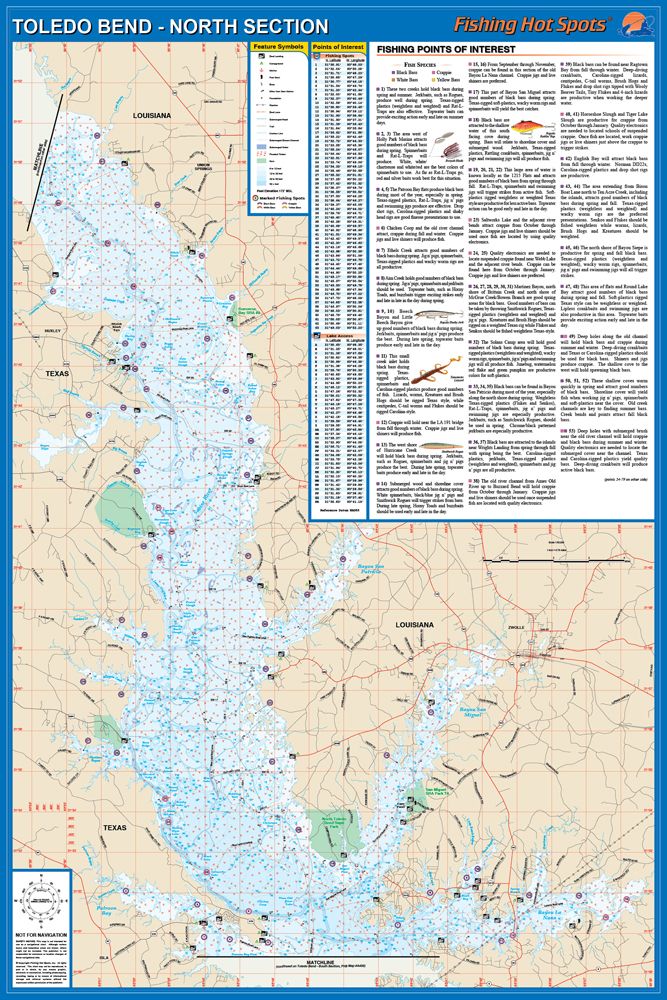 Toledo Bend Reservoir (South Section - Dam to Patroon Bay) Texas/Louisiana Waterproof Map (Fishing Hot Spots)