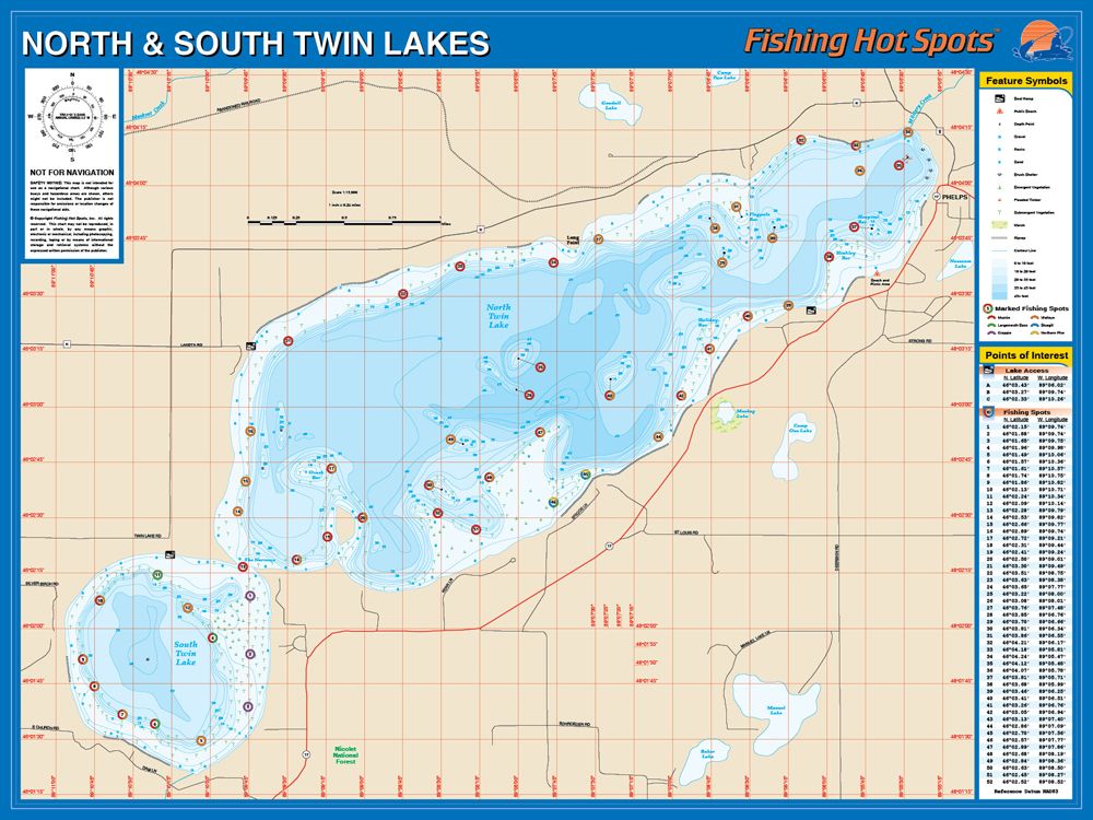 North and South Twin Lakes (Vilas County), Wisconsin Waterproof Map (Fishing Hot Spots)